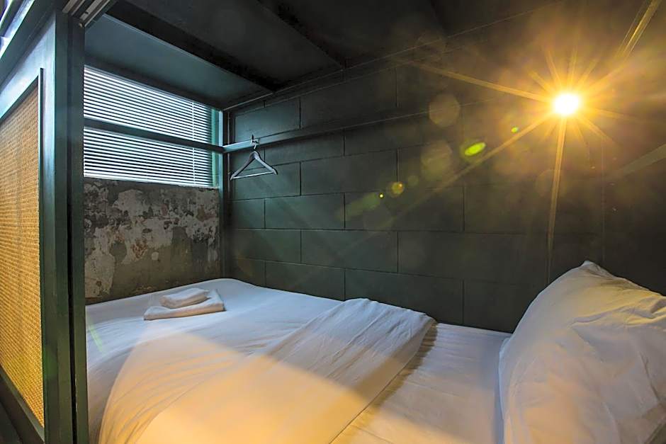 This bed in dormitory features air conditioning and tumble dryer.